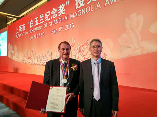 ♦9月8日下午,2015年上海市“白玉兰纪念奖”授奖仪式在上海香格里拉大酒店举行,我校与加拿大合办的上海泰尔弗国际商务培训中心英国籍教务长柯迈克尔获此殊荣。副校长张锁怀,国际交流处、上海泰尔弗国际商务培训中心负责人及获奖者何迈克应邀出席了今年的授奖仪式。
