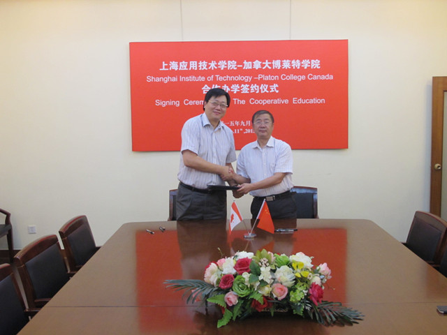 ♦日前,在我校徐汇校区召开的2015年上海泰尔弗国际商务培训中心第二次理事会会议上,校长刘宇陆和泰尔弗教育集团总裁杨柏分别代表上海应用技术学院和加拿大博莱特学院签署了新一轮合作办学协议,该协议报上海市教委批准后生效,有效期将从批准之日起至二〇二二年六月三十日止。