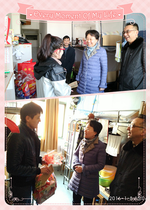 ♦1月8日下午,校党委副书记、副校长张艳萍,学工部部长、校长办公室主任袁翔在学生处资助管理中心负责人、高职学院党总支书记、副院长的陪同下,来到徐汇校区学生宿舍看望并慰问了高职学院2名少数民族孤儿学生。