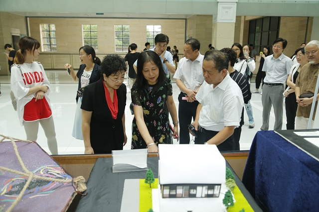 仪式结束后,宋敏娟及在场师生依次参观了作品展。