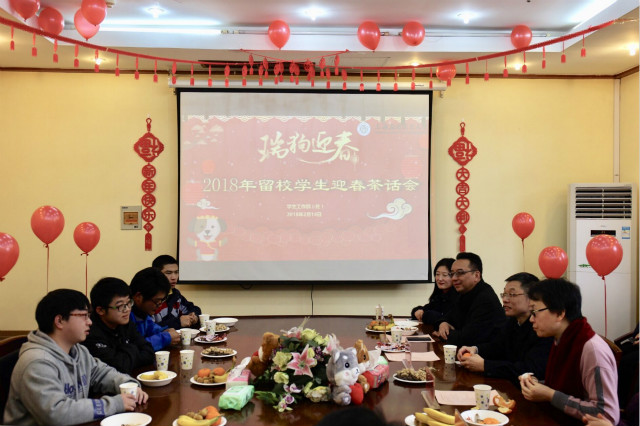 陆靖表示,学校选择在这个美好而传统的春节到来之际举行茶话会,别有一番特殊意义。茶话会是为了给大家准备了一场别样的“年夜饭”,营造节日的氛围,增添佳节的“味道”,希望大家把学校当成自己的“家”,把同学们当成兄弟姐妹,相互关心相互爱护,怀揣美好的祝福与祝愿渡过这个寒冷而温暖的假期,虽然气候是寒冷的,然而学校对留校学生的关心关怀和关爱,一直都是温暖的,希望大家好好努力,新年有新的进步与收获。陆靖还与同学们交流了“舌尖上的家乡”,谈论了每个留校学生家乡的美食、大学及民俗等,使大家的内心倍感温暖,回味起家乡的香与甜,就像已经回过自己的家乡一样。