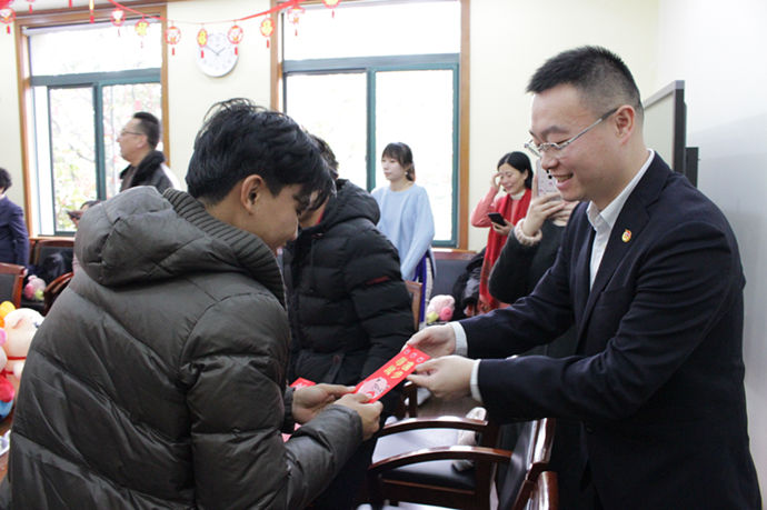 茶话会上,柯勤飞、戴冰分别为到场的每位学生发放了春节慰问金、节日餐券,送上学校和团市委精心准备的三份新年大礼包,并与学生们亲切交谈、共话新春佳节。