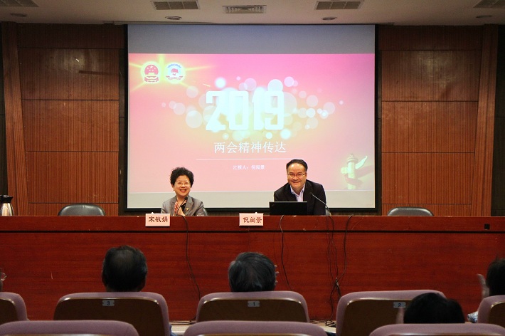4月24日,全国政协委员、市教委副主任倪闽景应邀来校,为离退休党委学习全国“两会”精神作辅导报告。校党委副书记、离退休工作委员会主任宋敏娟主持报告会。校离退休党员和艺术学院师生二百多人共同聆听。