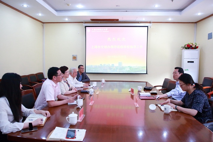 5月29日,校长柯勤飞会见了到访我校的上海市文创办副主任陈跃华等一行,双方就进一步推进我校文化创意产业及品牌战略发展进行交流。