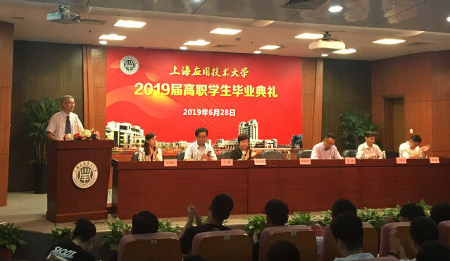 6月28日,我校2019届高职学生毕业典礼在徐汇校区举行。副校长张锁怀出席并讲话,党委学工部部长、学生处处长袁翔主持仪式。徐汇校区管委会副主任兼办公室主任范文蓓,高职学院党政班子成员,上海石化工业学校及上海信息技术学校负责人,高职学院教师、辅导员、毕业生、家长代表出席本次典礼。