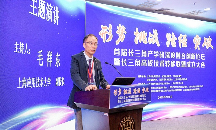 7月6日,由上海市教育委员会、浙江省教育厅、江苏省教育厅、安徽省教育厅、中国民营科技促进会、上海市科学技术协会等部门共同指导,上海市教委科发中心和上海应用技术大学联合主办的“首届长三角产学研深度融合创新论坛暨长三角高校技术转移联盟成立大会”在我校徐汇校区举行。