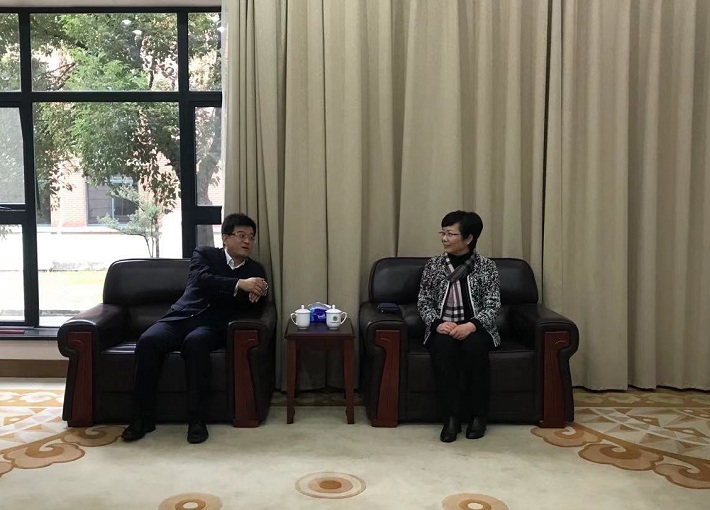 12月18日,上海市委委员、市科技工委书记刘岩, 上海创业学院院长、上海市科委总工程师陆敏,上海市科创中心主任朱正红等一行来校,校长柯勤飞、副校长毛祥东热情接待。双方举行会谈,对上海创业学院建设和未来发展进行了深入研讨,对新型研发中心建设交换了意见。柯勤飞希望,市科委对我校区块链研究中心建设给予指导和支持。