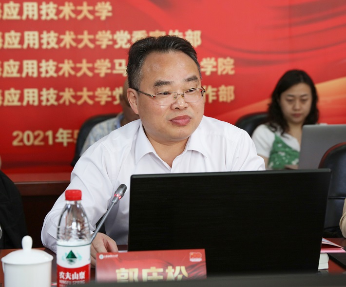 郭庆松在开幕式致辞时指出,本次论坛立足“两个一百年”奋斗目标历史交汇的关键节点,主题聚焦,正当其时,十分必要,是上海应用技术大学为庆祝中国共产党成立100周年的特别“献礼”。回望过往的奋斗路,中国共产党不仅坚持了历史前进的大逻辑,顺应了时代发展的大潮流,而且实现了中国社会发展的历史逻辑、科学社会主义的理论逻辑、中国特色社会主义的实践逻辑的辩证统一。