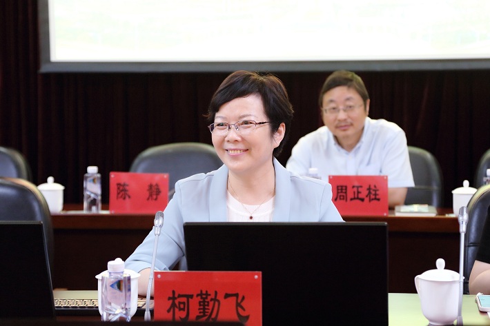 柯勤飞致欢迎辞,代表学校感谢市教委一直以来对学校建设发展的关心和支持,欢迎李蔚一行来校指导工作。她表示,学校始终坚持建设具有国际影响力的高水平应用创新型大学的发展目标,秉承“应用导向,技术创新”特色定位,紧紧抓住上海高等教育发展改革的机遇,在市政府和市教委的大力支持下,学校2020年作为博士学位授予单位获上海市推荐,并获国务院学位办博士学位授予单位审核公示。学校将以此为契机,按照市政府和市教委要求,全力以赴做好高水平地方大学的建设工作,强化优势学科建设,全面提升学校综合实力,争取为全国应用型高校建设起到示范引领作用。