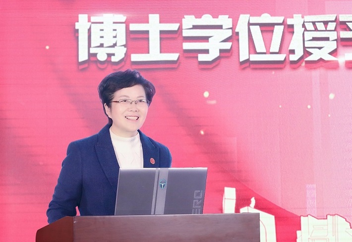 柯勤飞以《厚德精技、砥砺知行——加快建设高水平应用创新型大学》为题,全面回顾了学校近年来抢抓发展机遇、实现关键突破所取得的一系列重大成绩,介绍了学校在新发展阶段聚焦战略重点,引领创新发展的蓝图愿景。柯勤飞表示,近年来,学校以申报博士学位授予单位和博士学位授权点为契机,凝练特色,加大投入,加强建设,在人才培养、科学研究、高水平师资队伍、学科平台建设等方面取得了显著成绩。新时代孕育新愿景,新机遇期待新作为。学校将以获批博士学位授予单位和入选上海高水平地方大学重点建设单位为契机,坚持以应用创新为学校发展核心理念,以高素质应用创新型人才为培养目标,以跨学科创新团队为主要科研建设平台,以产学研用协同创新为科技成果转化主渠道,矢志不移践行“厚德精技、砥砺知行”的上应精神,努力实现建设具有国际影响力的高水平应用创新型大学的“上应梦”!