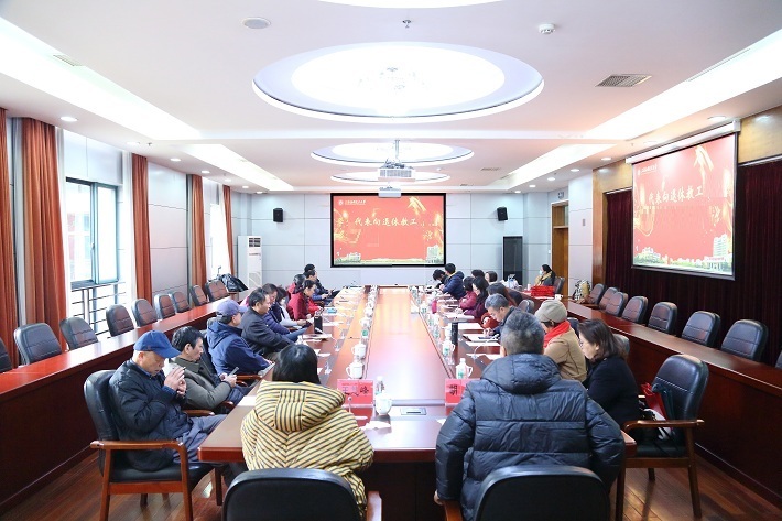 会上为退休教工献上新春祝福,为每一位退休教职工佩戴如意围巾,并颁发校工会精心制作退休纪念册。校工会常务副主席张淑梅向退休教职工致答谢词。