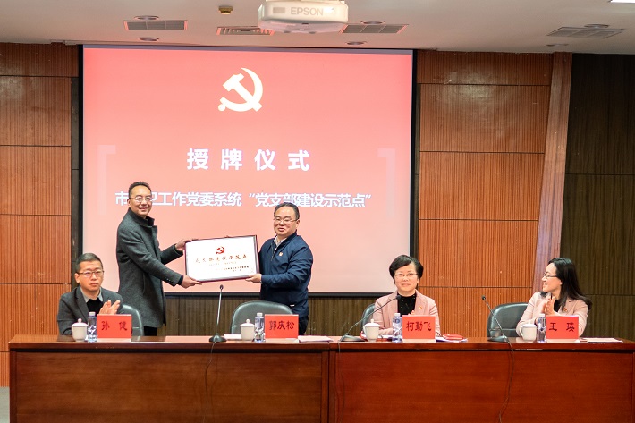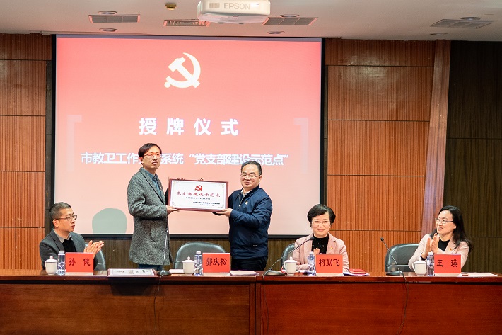 会上举行了上海市教卫工作党委系统“党支部建设示范点”授牌仪式。郭庆松为香料香精化妆品学部教工第二党支部、机关党委第八党支部授牌。