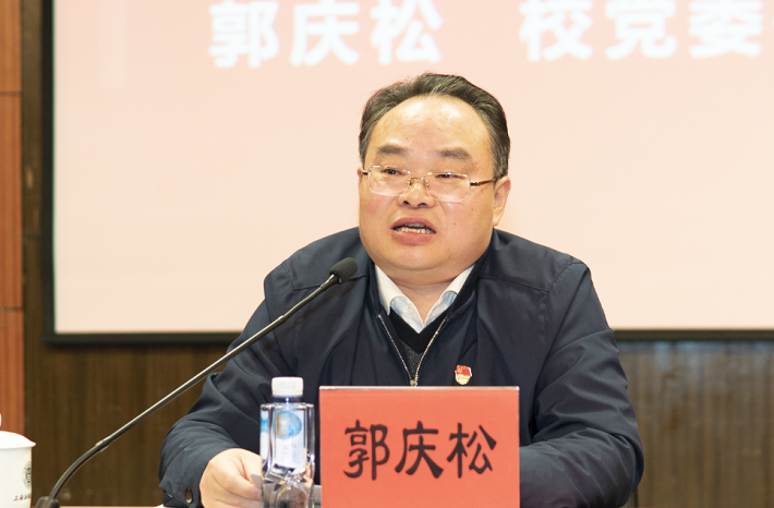 郭庆松指出,要坚持党的百年奋斗历史经验,进一步增强历史自信,巩固拓展党史学习教育成果,努力做好推进事业高质量发展这篇大文章。就推动党史学习教育常态化长效化,郭庆松提出三点要求:一是持之以恒加强党的全面领导,推动学习贯彻习近平新时代中国特色社会主义思想走深走实。二是持之以恒巩固拓展党史学习教育成果,切实把党史学习教育融入日常、抓在经常。三是持之以恒推动党史学习教育与学校中心工作的深度融合,确保实现“十四五”时期高质量发展。