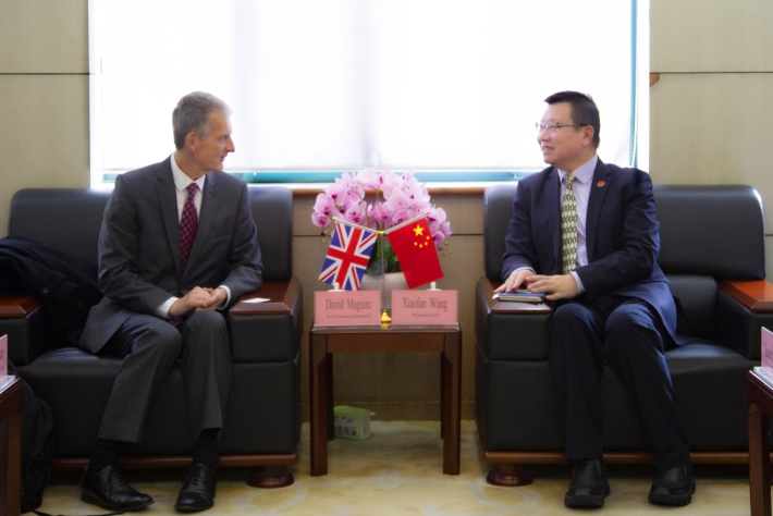 11月14日,英国东安格利亚大学校长大卫·马奎尔(David Maguire)率团访问我校,校长汪小帆会见代表团一行。国际交流处、理学院和生态技术与工程学院相关负责人陪同会见。