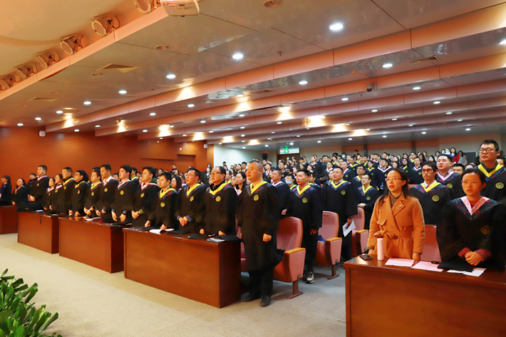 在欢快的音乐声中,各位领导共同为学位获得者代表正冠拨穗,颁发学位证书。毕业典礼在全场激昂的《毕业歌》大合唱中圆满落幕。