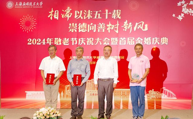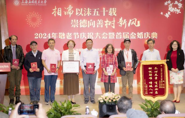 九九重阳节,浓浓敬老情。10月11日,上海应用技术大学“相濡以沫五十载,崇德向善树新风”敬老节庆祝大会暨首届金婚庆典在徐汇校区举行。校党委书记郭庆松,校党委副书记陈海瑾出席,向老同志们致以诚挚的问候和节日的祝福。
