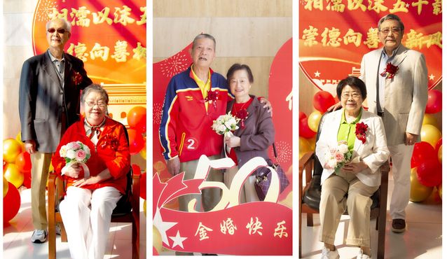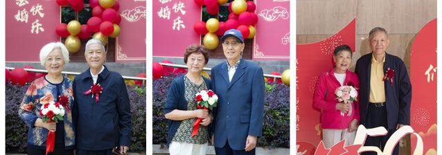 岁月悠悠,相濡以沫,真情弥新。我校已满50年婚龄的共有243对佳侣。30余对金婚佳侣来到金婚庆典现场。他们脸上洋溢着幸福的笑容,共同见证从青丝到白发的浪漫携手。