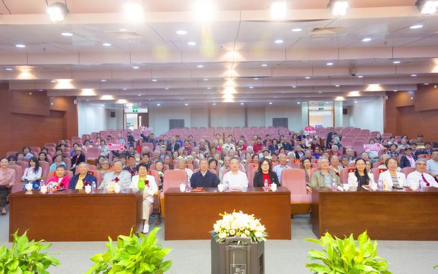 会场气氛温馨祥和。退休志愿者为金婚佳侣提供暖心的一对一服务,拍摄下美好的瞬间,并将制作成精美的相册。学校退管会为全体金婚佳侣送上了美好祝福的慰问品。