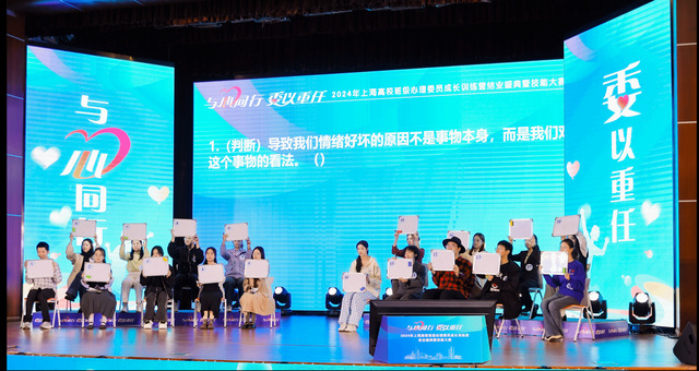 11月8日,由上海市教育委员会立项支持、上海学生心理健康教育发展中心指导管理、上海应用技术大学承办的2024年上海高校班级心理委员成长训练营结业盛典暨技能大赛圆满收官。上海应用技术大学党委副书记、副校长王瑛,上海市教育委员会德育处副处长杨长亮出席并讲话。上海海洋大学教授黄晞建、上海学生心理健康教育发展中心主任刘明波、上海市教育科学研究院研究员吴增强、上海建桥学院有限责任公司心理健康教育与咨询中心教授张海燕、 同济大学心理健康教育与咨询中心教授陈增堂等业内大咖担任专家评委,相关高校学工部负责人、相关高校心理中心负责人、参赛选手指导教师和决赛选手出席。
