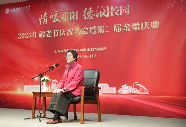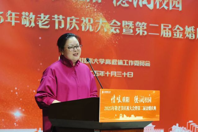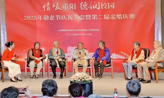 10月30日,学校“情暖重阳 德润校园” 敬老节庆祝大会暨第二届金婚庆典在徐汇校区举行,以重阳之名赴敬老之约,借金婚之喜颂岁月情深。校党委副书记陈海瑾出席并讲话。退局领导代表、离退休党委委员、党支部书记及委员、关工委特邀党建组织员、受表彰的先进集体和个人代表、金婚佳侣代表、退休片块长等约100人聚集一堂,共庆节日。